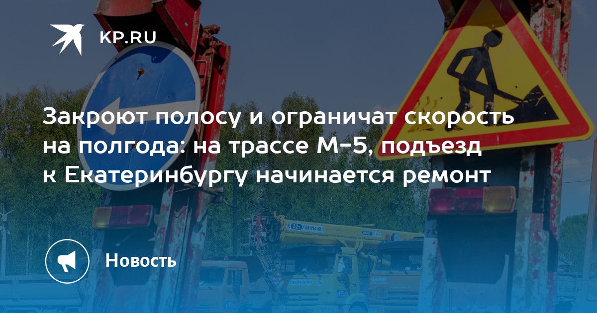 Со 2 мая до 15 октября на время ремонта трассы М-5, подъезд к Екатеринбургу вводятся ограничения движения для транспорта, сообщают в «Росавтодоре». Так, до 50 км/час будет ограничена скорость движения и закрыта одна полоса.